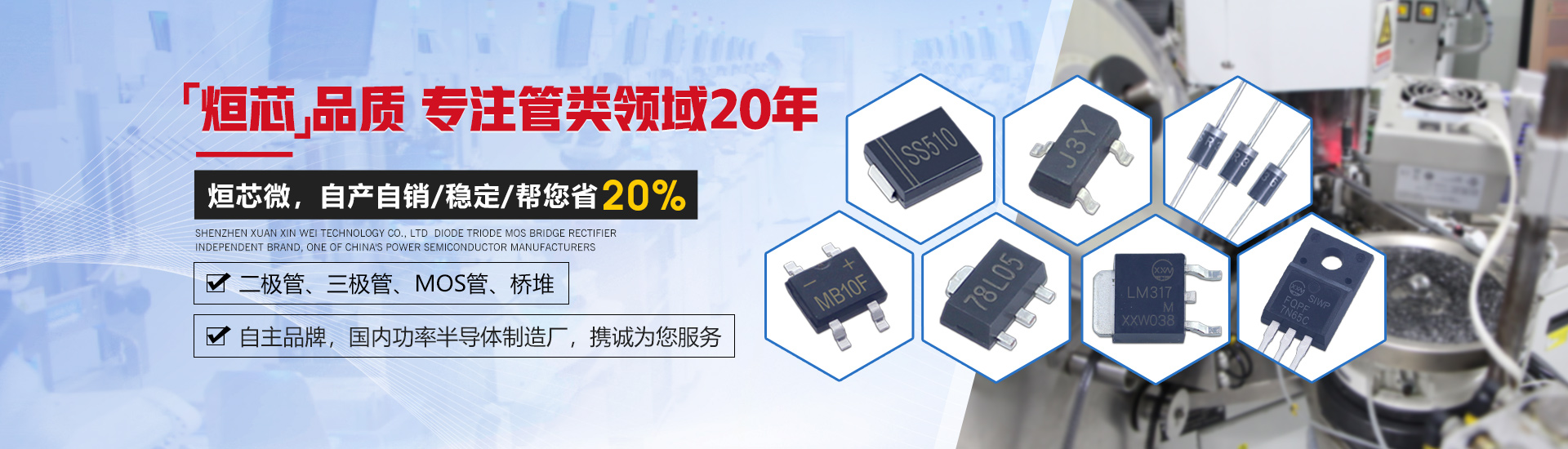 深圳市烜芯微科技有限公司是一家集研發(fā)、生產(chǎn)、銷售于一體,專注于二極管、三極管,MOS管、橋堆等功率半導體領域發(fā)展的企業(yè)。采用國際領先的GPP芯片生產(chǎn)工藝及一心多Die高精密制造工藝,擁有功率半導體器件工程實驗室,全自動高精密生產(chǎn)設備,產(chǎn)品層層把控,全程可追溯,保障了每只產(chǎn)品的卓越品質(zhì)。 產(chǎn)品封裝包括SMA,SMAF,SMB,SMBF,SMC,SOD-123,SOD-123FL,SOD-323,SOD-323FL,SOD-523,SOD-723,SOT-23,SOT-89,SOT23-3L,SOT23-5L,SOT23-6L,SOT-223,SOT-523,SOT-723,DO-41,DO-15,DO-27,DO-35,R-1,R-6,LL-34,LL-41,TO-277,TO-92,TO-92S,TO-92L,TO-126,TO-251,TO-252,TO-262,TO-263,TO-220,TO-220F,TO-247,TO-3P,TO-264,MBS,MBF,MBM,ABS,UMB,UMSB,DB,DBS,D3K,KBP,GBP,GBU,GBL,GBJ,KBL,KBU,KBJ,KBPC,KBPC6,KBPC8,KBPC-W,DNF,TSSOP-8,TSSOP-16,SOP-4,SOP-6,SOP-8,SOP-10,SOP-14,SOP-16,DIP-4,DIP-6,DIP-8,DIP-10,DIP-14,DIP-16,月產(chǎn)各封裝達6億只。 公司通過了ISO14001環(huán)境管理體系認證,產(chǎn)品均獲得了ISO9001質(zhì)量體系認證、UL、SGS等認證,符合歐盟最新RoHs指令。擁有和致力于烜芯微/XXW自主品牌產(chǎn)品的推廣,提供技術支持,選型替換,cost down方案及擁有專業(yè)的生產(chǎn)管理團隊和銷售團隊,保證了供貨穩(wěn)定及售前選型服務等問題。 公司產(chǎn)品廣泛應用于開關電源、適配器、逆變器、控制器、汽車電子、家用電器、通訊設備、無線充、鋰電池保護板、驅(qū)動電機、安防警報、太陽能光伏產(chǎn)業(yè)等多個領域。取得了國內(nèi)外眾多品牌大廠的認可與合作,我們將堅持奉行“烜芯品質(zhì),誠信經(jīng)營,合作共贏”為公司經(jīng)營理念!竭誠為新老客戶提供優(yōu)質(zhì)的產(chǎn)品及服務。